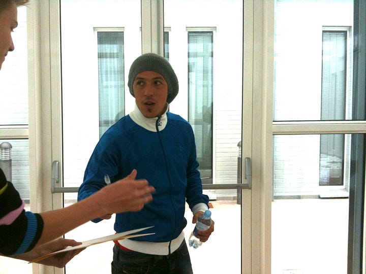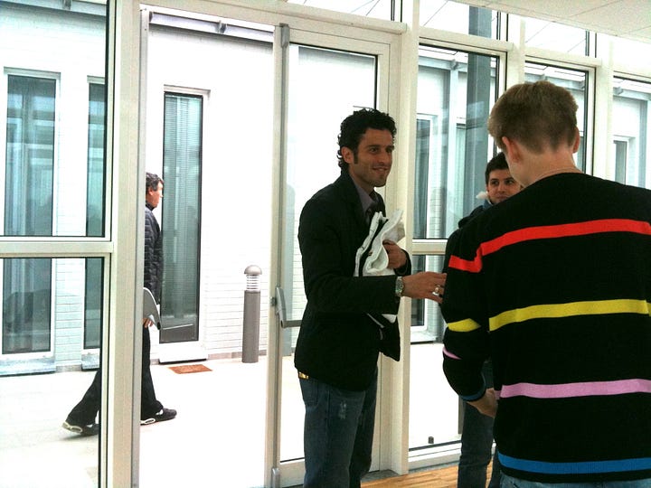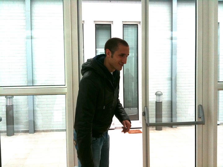 We expected to meet Gianluigi Buffon at Vinovo on November 21, 2009, during one of our early development expeditions for the film. After training, management ushered us into a glass enclosure — part greenhouse, part temple — where special guests could meet the players. Some came through smiling, signing jerseys, posing for photos. A still up-and-coming Giorgio Chiellini, veteran Mauro Camoranesi (with a slightly rasta look that day), even Sebastian Giovinco, who gave us the chance to stealthily measure ourselves against him to see if we finally had a height advantage over at least one Juve player. Let’s call it a draw — though we swear our shoulders were broader than the Atomic Ant’s.